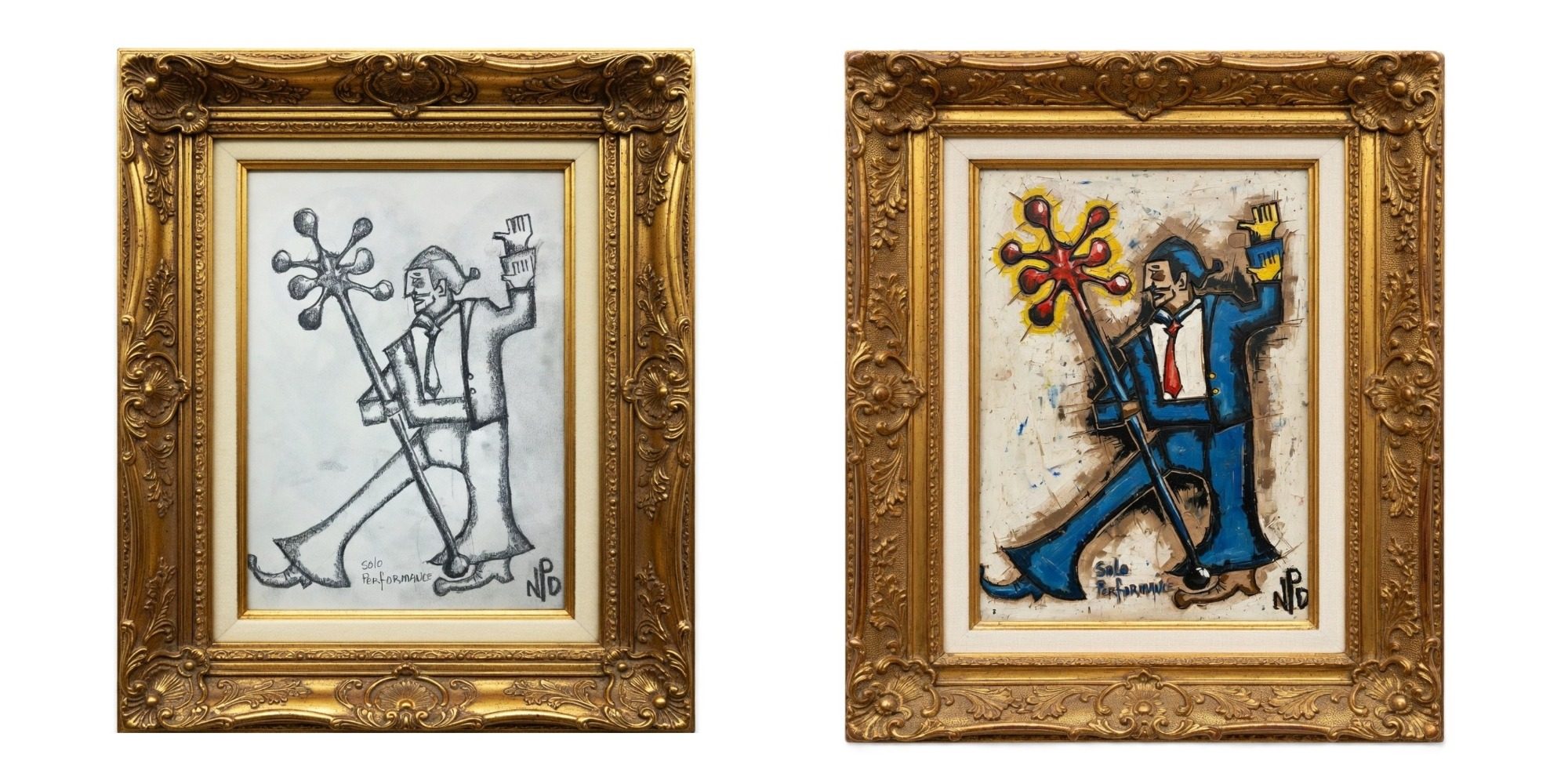 Through a sideways glance, the painting invites viewers to reconsider the Bauhaus founders not as distant historical figures but as vibrant catalysts of modern design. The contrasts in color and form reflect the tension and harmony that characterized their work—between tradition and innovation, chaos and order.
