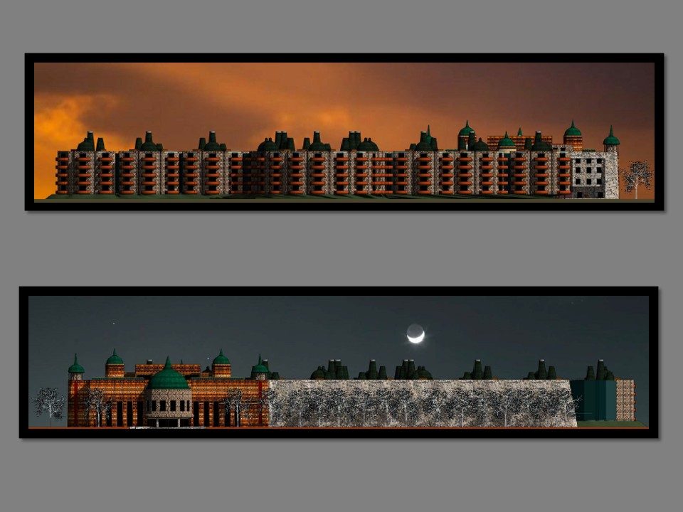 City Through a Child's Eyes. This work explores the city from a child’s perspective, revealing both its potential and its flaws. It also delves into a metaphorical relationship with architectural lighting, where design extends beyond natural light to include artificial elements integrated into building façades. The representation of light in architectural drawings—especially on elevations—requires careful attention to how shadows are cast, adding depth and dimension to the visual interpretation of the structure.