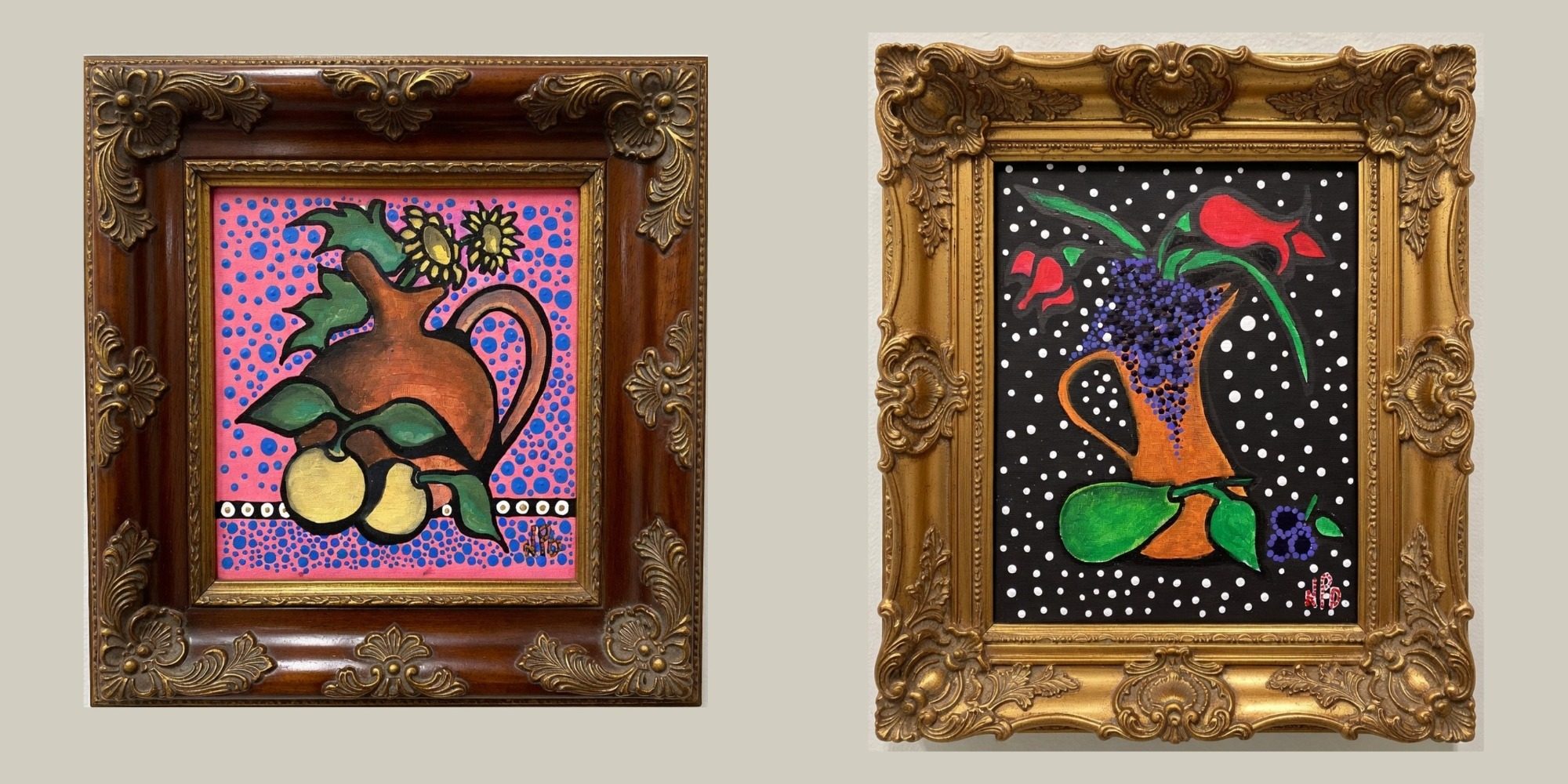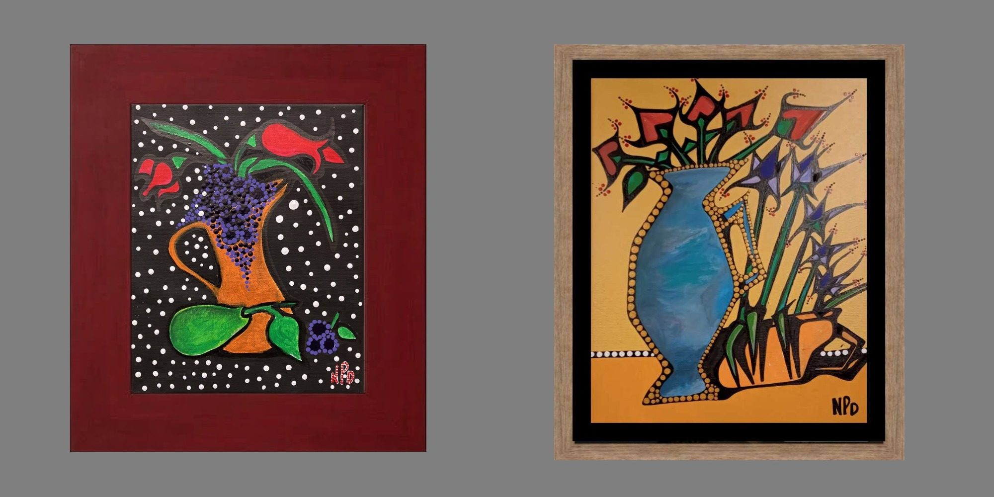 Looking back on the past year (2024) from a quieter distance, I begin to notice the delicate details—those small, luminous moments that often go unseen in the rush of daily life. These six pointillist vases, each blooming with their own quiet rhythm, carry the memory of Thursdays spent at the Catholic Social Services Market in Anchorage, AK. Week after week, I stood among a circle of remarkable women, sharing art, stories, and purpose.