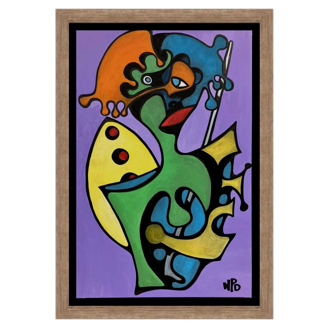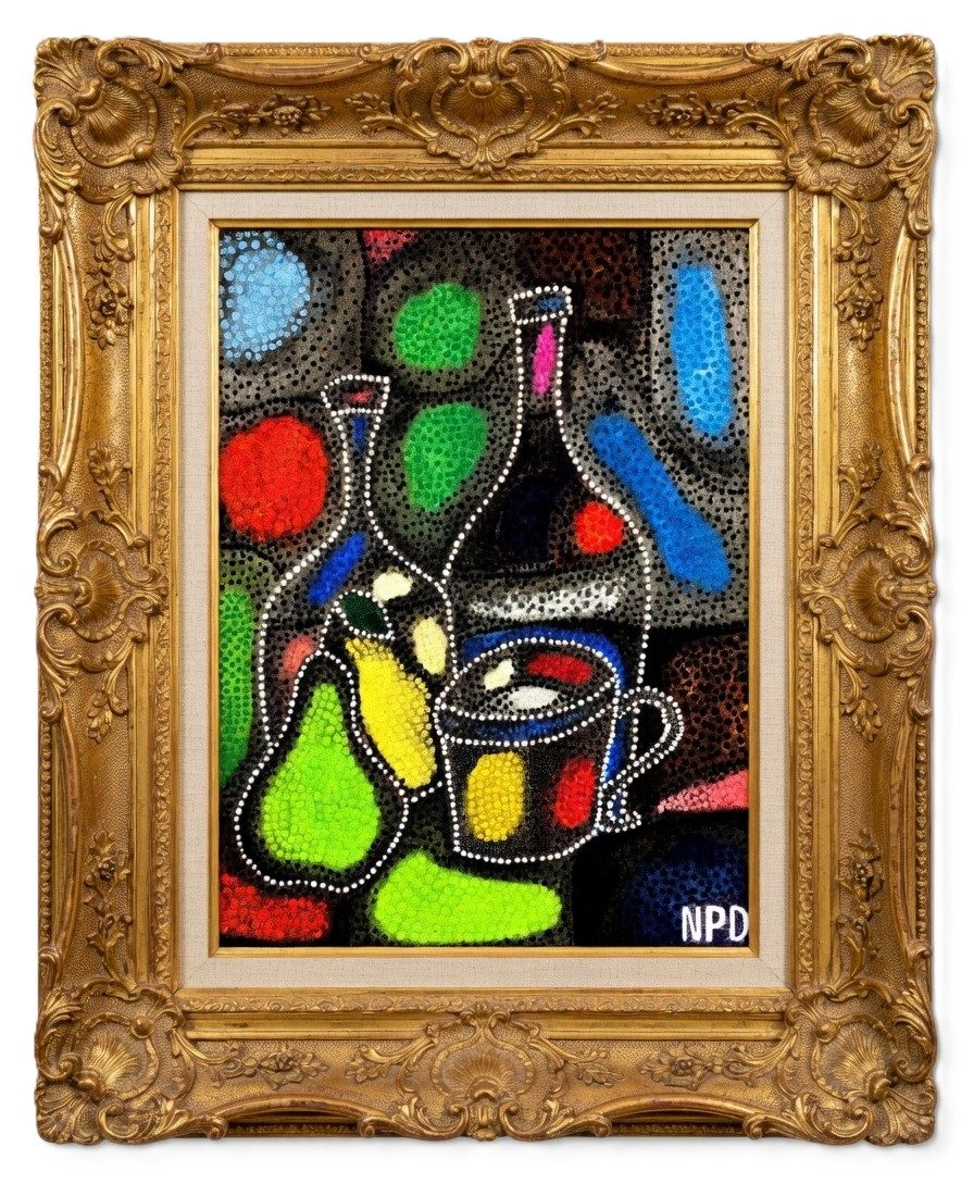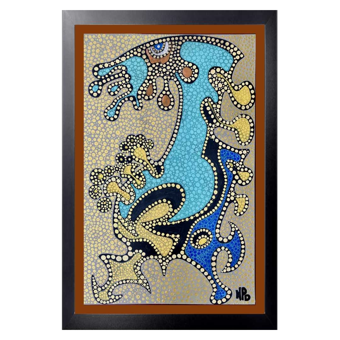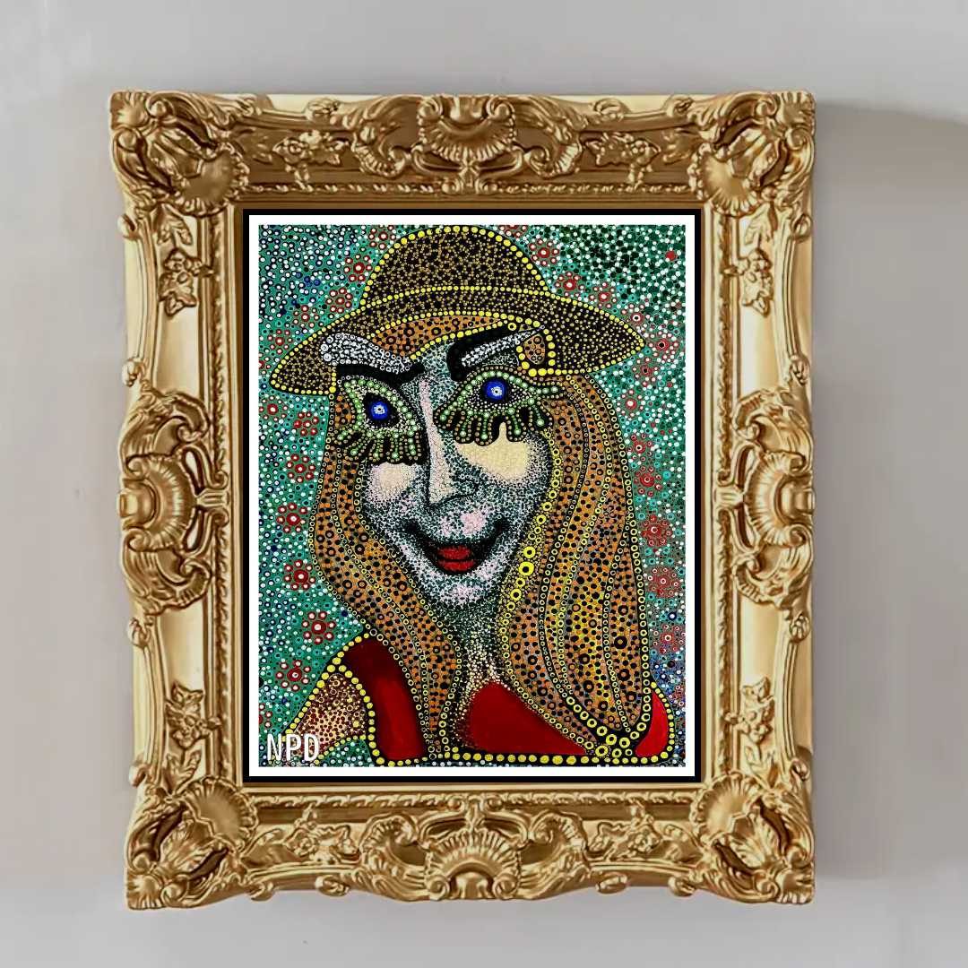 Rendered in acrylic on a 24×36 inch canvas, this piece is a parody layered over a carefully composed foundation. The intricate arrangement of dots creates a dynamic tension, balancing form and fragmentation. This playful yet complex pattern invites viewers to reflect on how perspective shapes our understanding of life’s contradictions.