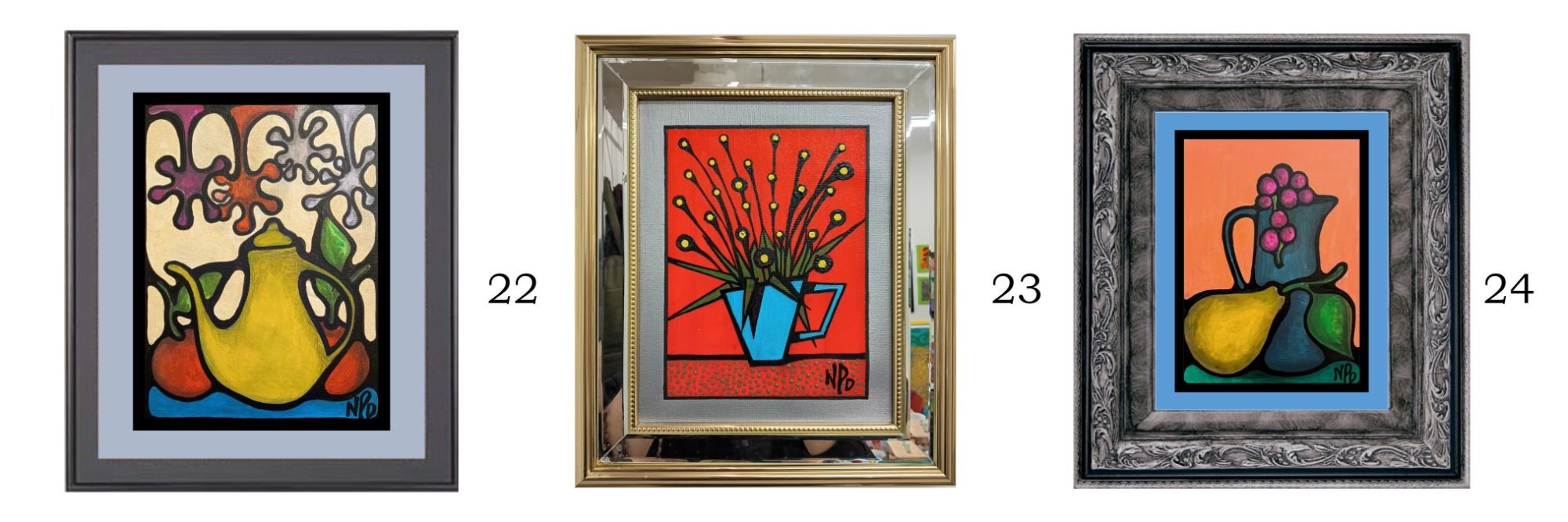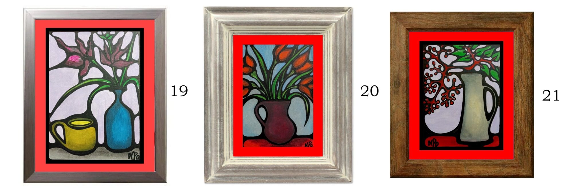 These small pieces are all acrylic paintings on canvas, created during the winter of 2025 when larger works were being painted. 23 (8x10 inches) 22, 24 (12x9 inches)