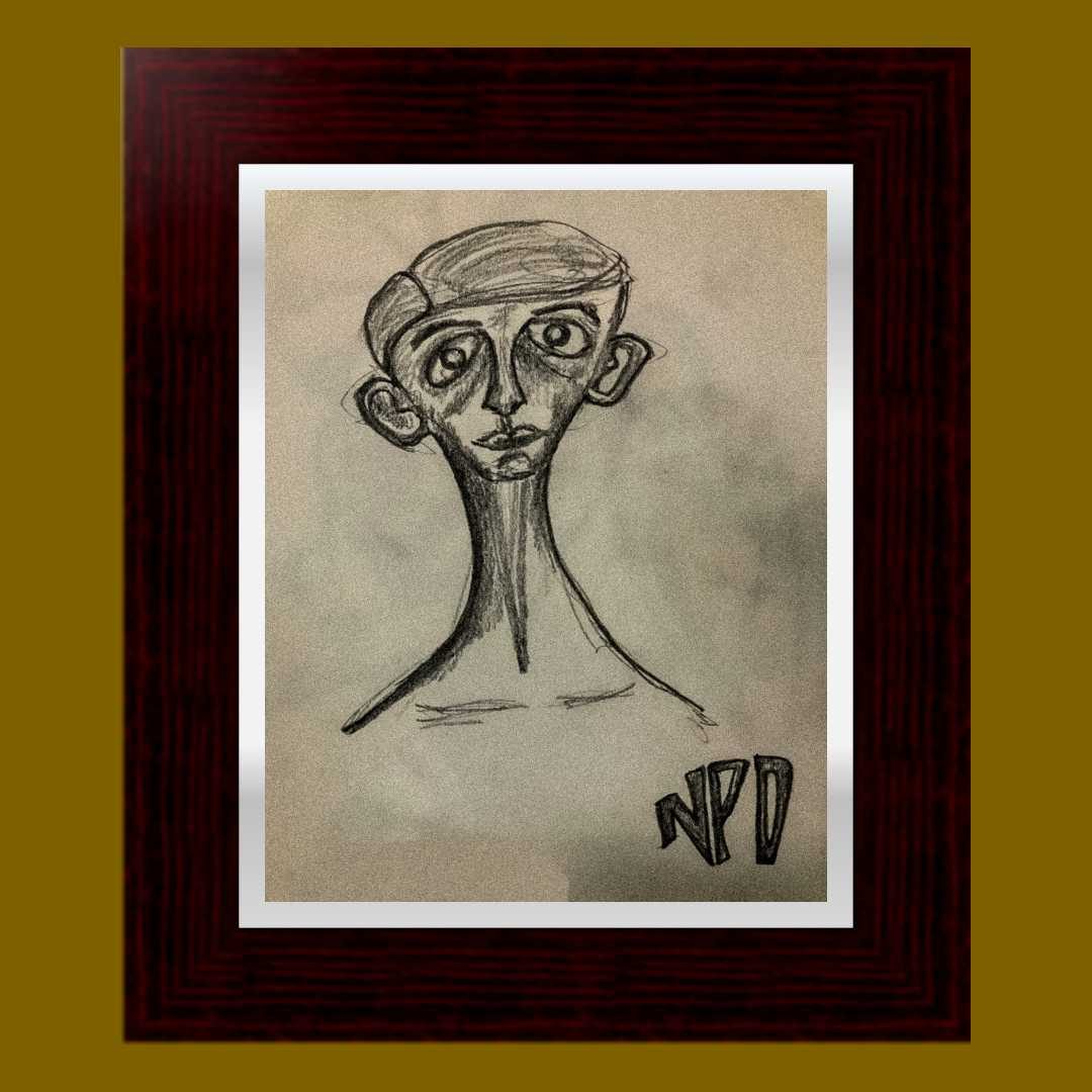 A gaze without plea, without apology—this portrait channels the disquieting clarity of Meursault, the antihero of The Stranger. Against the void of a black canvas, the figure’s eyes emerge not as windows to the soul, but as mirrors of the absurd: unblinking, unburdened, and untouched by the moral scaffolding of society.