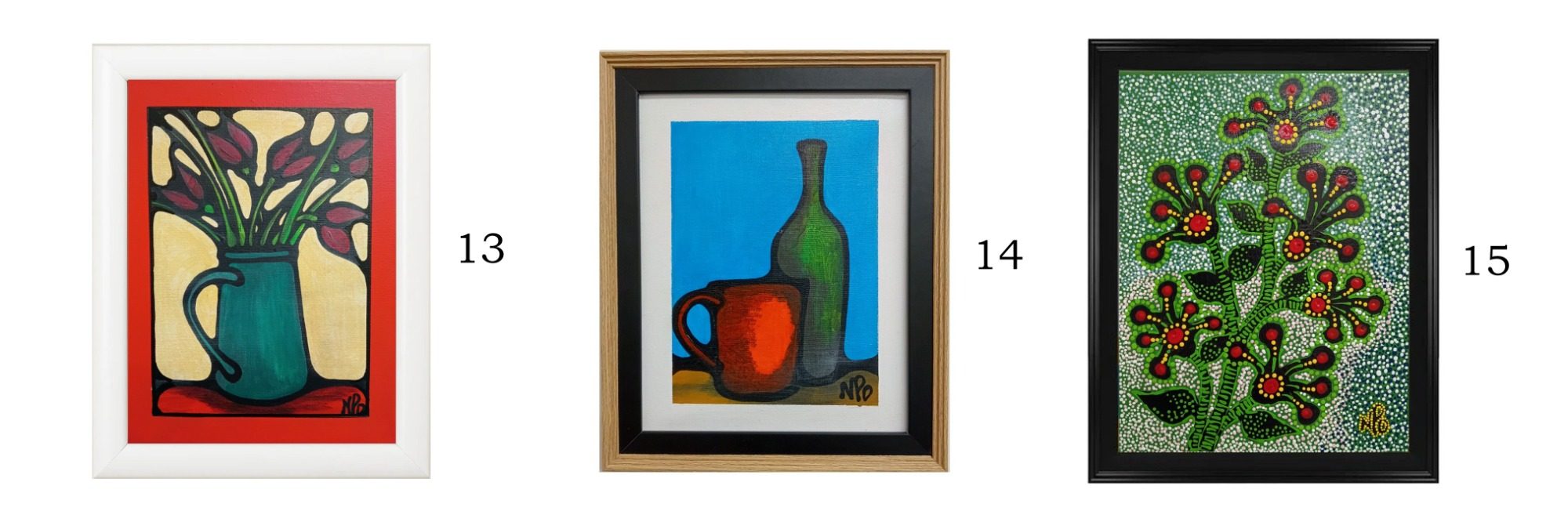 These small pieces are all acrylic paintings on canvas, created during the winter of 2025 when larger works were being painted. 13 (12x9 inches) 14, 15 (8x10 inches)
