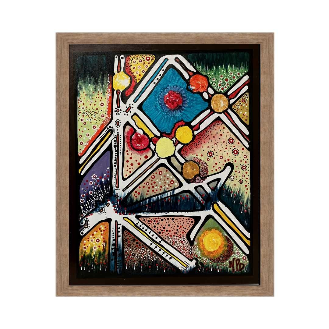 Bold and unflinching, Warrior stands as a visual invocation of resilience. Layers of acrylic surge across the canvas like armor—textured, luminous, and battle-worn—evoking both the chaos and clarity of inner strength. The figure, whether literal or abstract, emerges from a storm of color and gesture, confronting the viewer with a gaze that is not pleading, but resolute. Mythic undertones ripple beneath the surface: echoes of ancestral courage, spiritual defiance, and the quiet power of survival. This piece does not merely depict a warrior—it becomes one, inviting reflection on what it means to endure, to protect, and to rise.