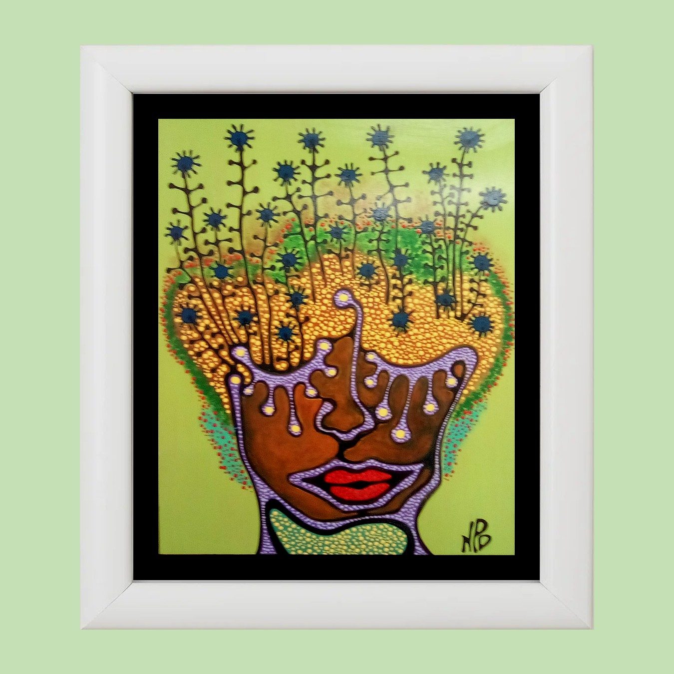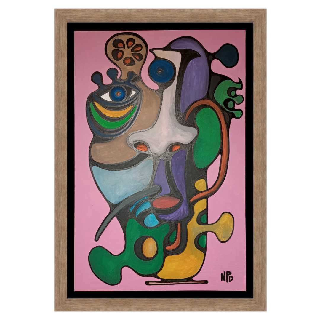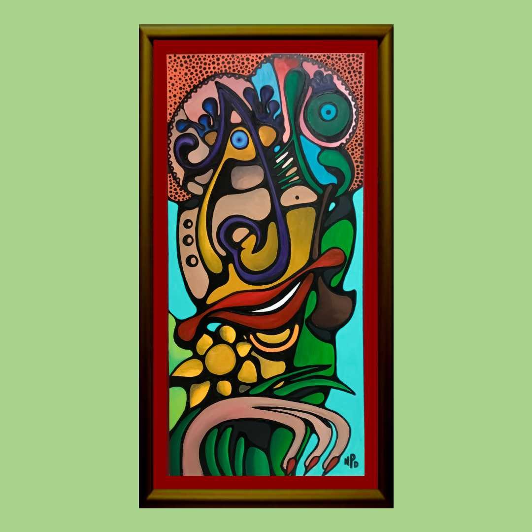 Rendered in acrylic on a 24×36 inch canvas, this piece is a parody layered over a carefully composed foundation. The intricate arrangement of dots creates a dynamic tension, balancing form and fragmentation. This playful yet complex pattern invites viewers to reflect on how perspective shapes our understanding of life’s contradictions.