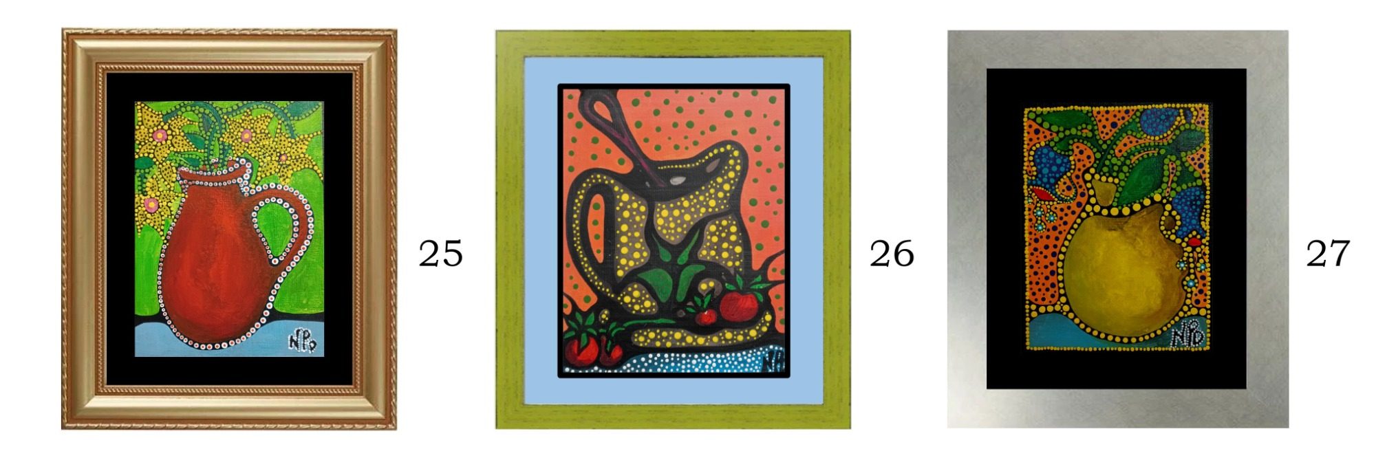 These small pieces are all acrylic paintings on canvas, created during the winter of 2025 when larger works were being painted. 23 (8x10 inches) 22, 24 (12x9 inches)