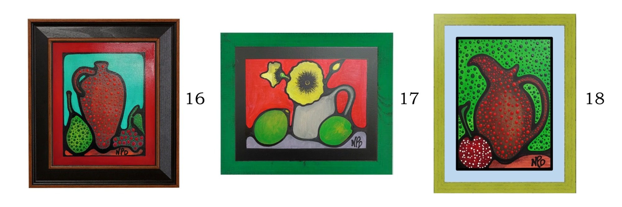 These small pieces are all acrylic paintings on canvas, created during the winter of 2025 when larger works were being painted. 13 (12x9 inches) 14, 15 (8x10 inches)