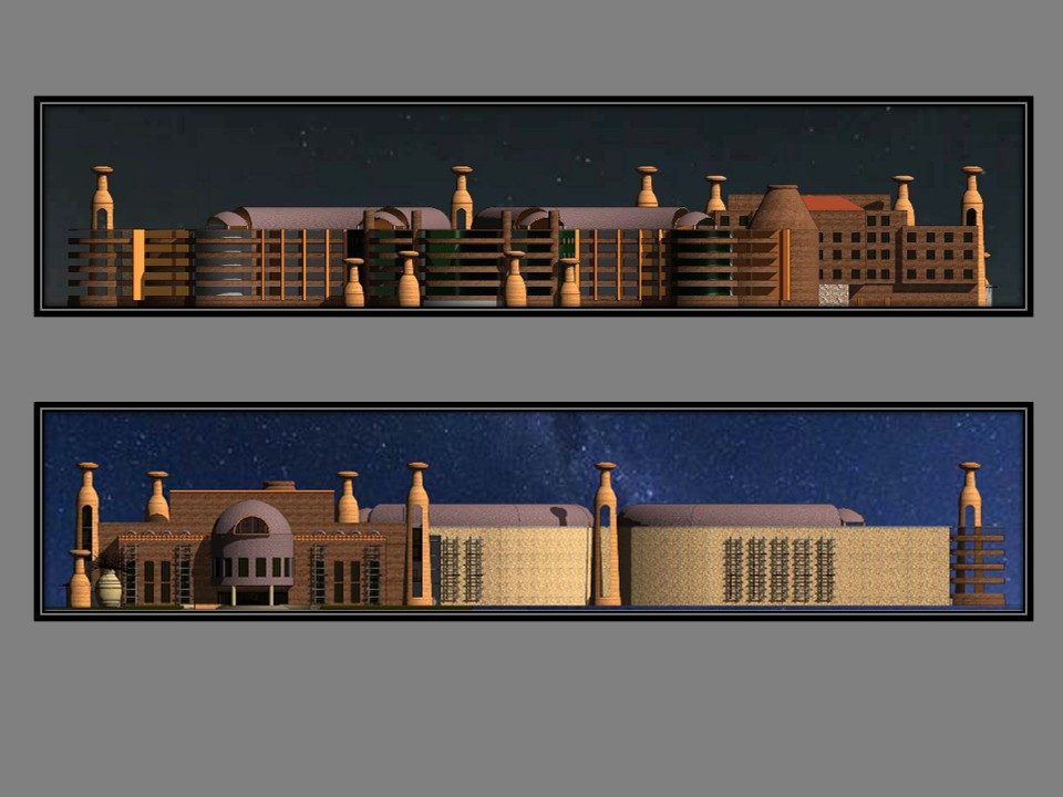 City Through a Child's Eyes. This work explores the city from a child’s perspective, revealing both its potential and its flaws. It also delves into a metaphorical relationship with architectural lighting, where design extends beyond natural light to include artificial elements integrated into building façades. The representation of light in architectural drawings—especially on elevations—requires careful attention to how shadows are cast, adding depth and dimension to the visual interpretation of the structure.