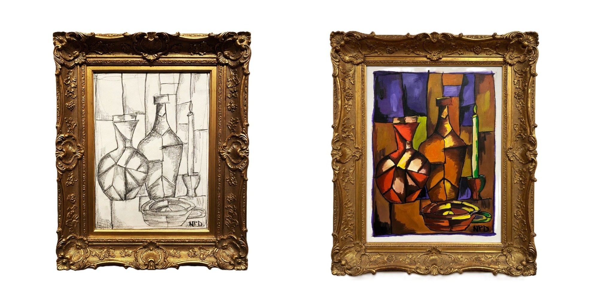 The croquis that became an acrylic on canvas, titled The Pear of Discord: Contemporary Cubism at Play
